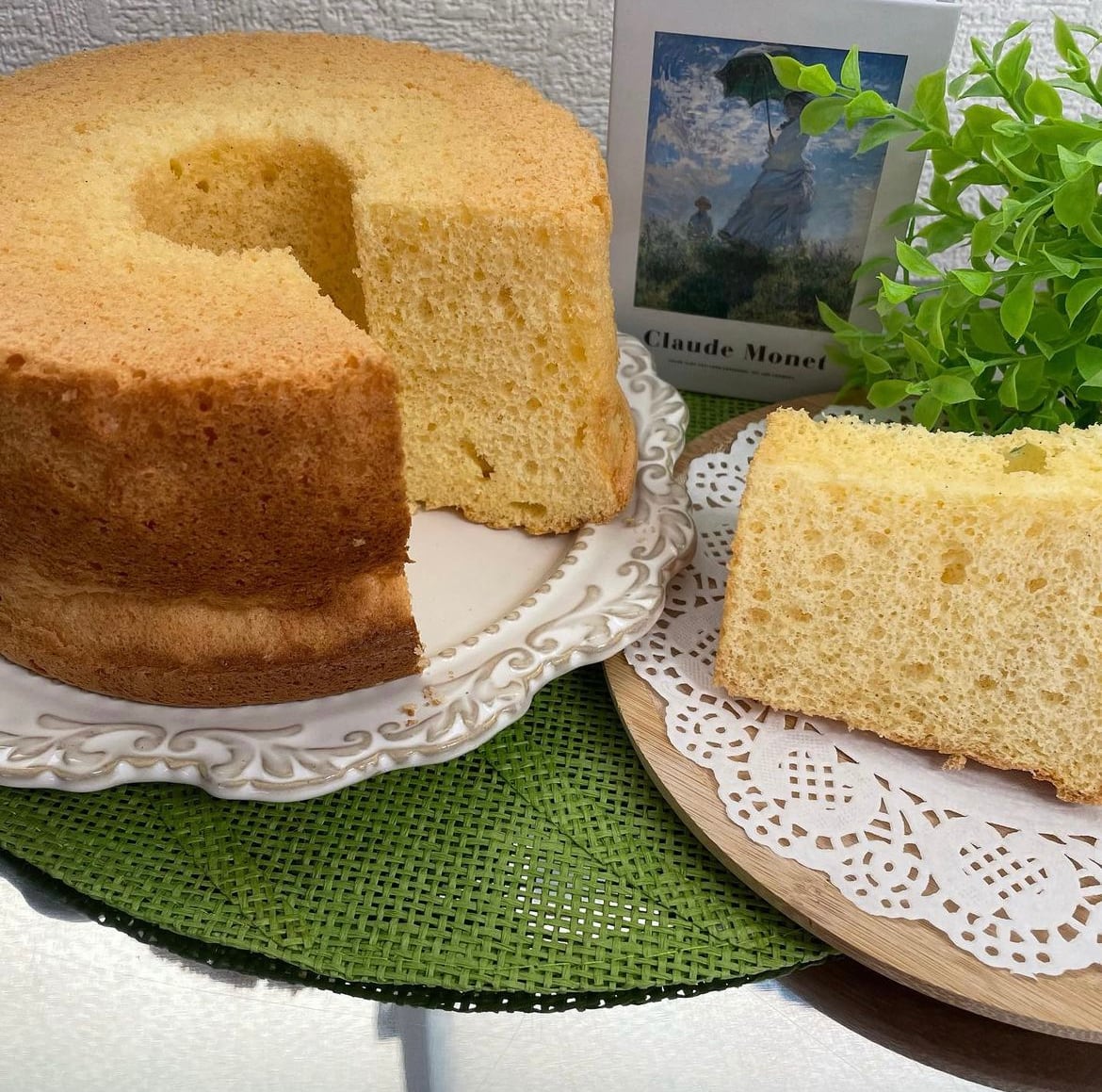 バニラビーンズとバニラオイルを入れ焼き上げたふわふわシフォンケーキ
